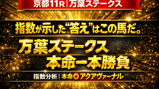 京都 芝3000m 外(A) 万葉ステークス2026予想|指数で本命確定!京都11R徹底分析 万葉ステークスの予想を指数とデータ重視で解説。本命は指数最上位⑤アクアヴァーナル。無駄打ちを減らす買い目構成まで公開します。 2026.01.04 京都 芝3000m 外(A)
